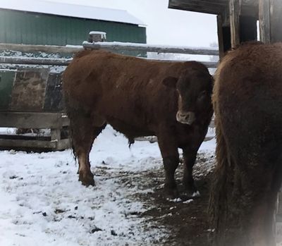 Playboy was born April 8th, 2022, with a birth weight of 92 pounds. He's not huge, but still should not be bred to heifers. You definitely would get a lot of beef on his offspring. His dam was sired by "Bar Dale Tyler", and she's out of a fullblood cow we bought.